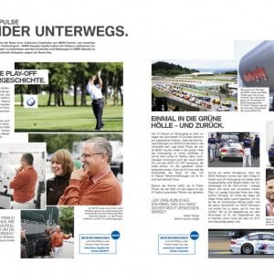 Und das ist noch nicht alles. Im ganzen Heft finden sich Beispiele für diese „Alltags-Testimonials“, die unvoreingenommen über ihre Erlebnisse mit der Marke BMW sprechen – und damit auch für sie werben. Da erzählen ehemalige Besitzer von Fremdfahrzeugen, warum Sie jetzt zu BMW gewechselt sind – bei einem Fahrertraining am Airport München. Und dank BMW Impulse konnte ein Leser nicht nur die Atmosphäre beim 24-Stunden-Rennen am Nürburgring genießen, sondern auch hinter die Kulissen schauen – die von BMW natürlich.