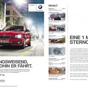 Diese besondere Mischung aus Reportagen und authentischem Erlebnisberichten wird ergänzt durch hintergründige Storys über technische Innovationen, News und Zukunftsausblicke. So entsteht nicht nur ein wertiges, sondern vor allem ein wertvolles Magazin für die Kommunikation der Marke BMW.