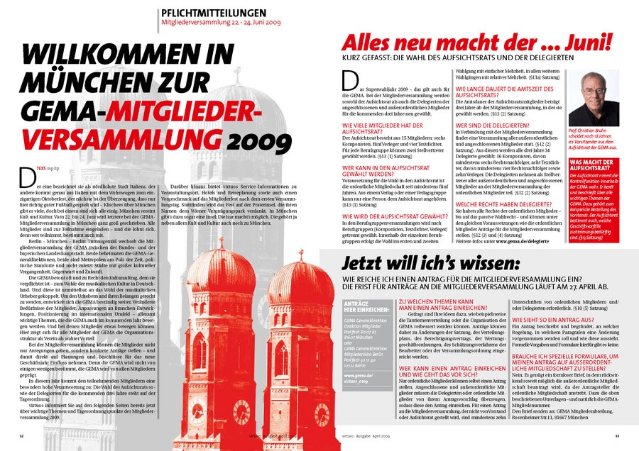 - Rotes Kreuzchen im Kalender: Die GEMA lädt zu ihrer Mitgliederversammlung turnusmäßig nach München ein. virtuos nennt die wichtigsten Themen vorab.