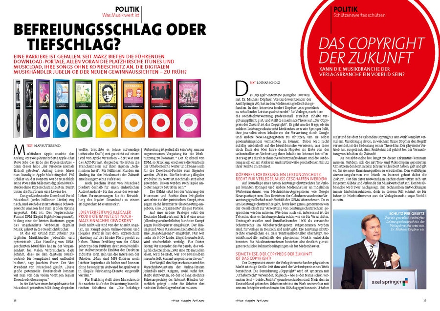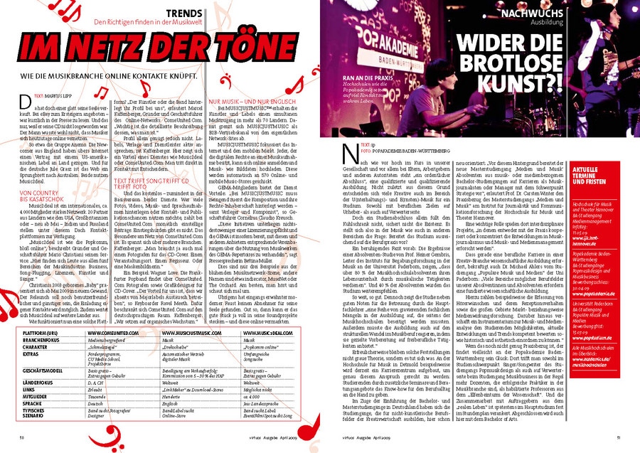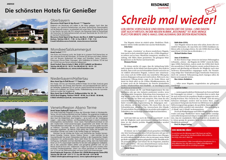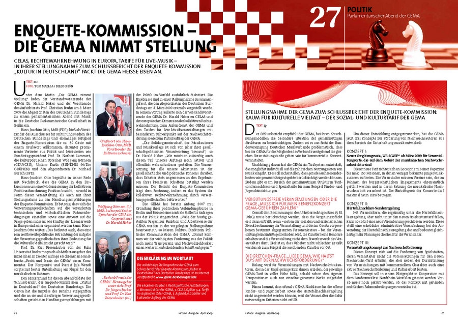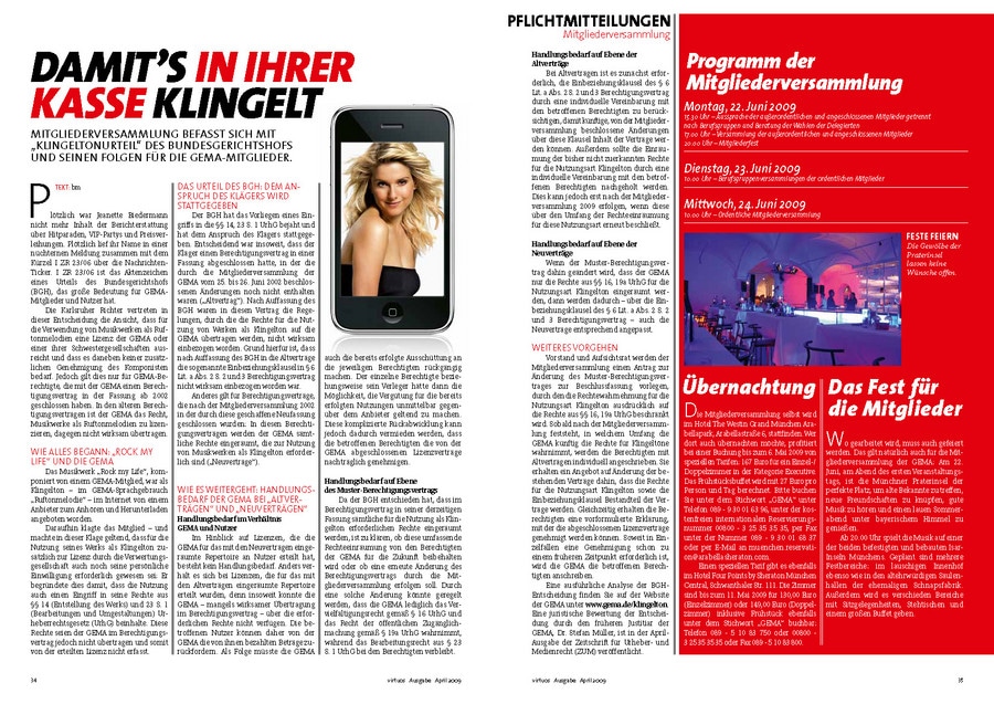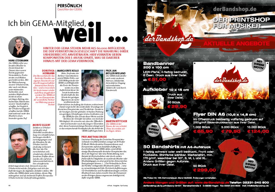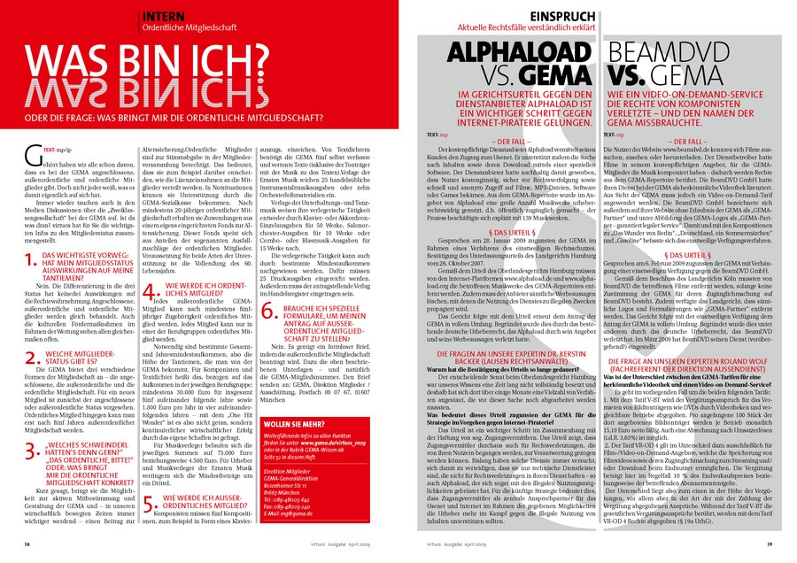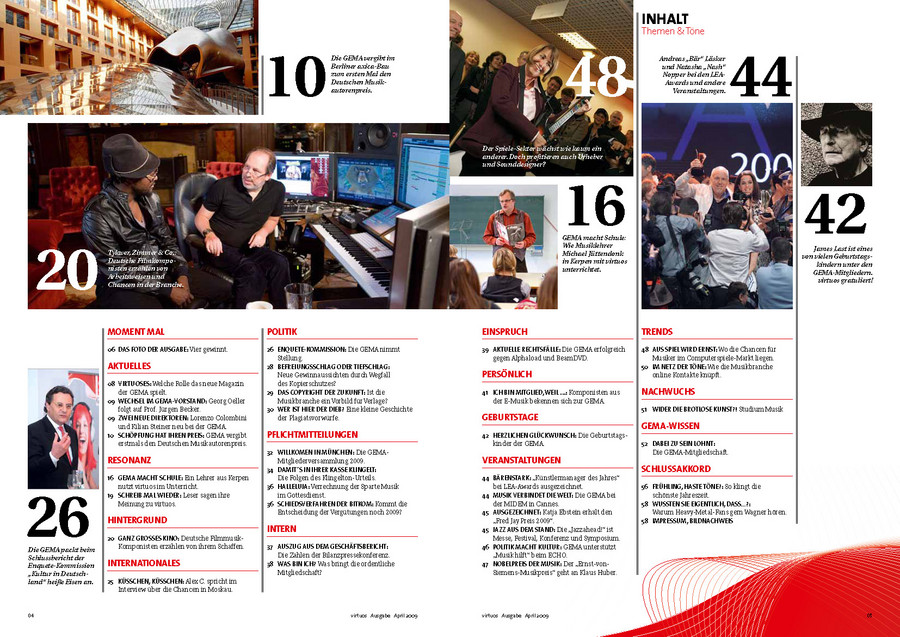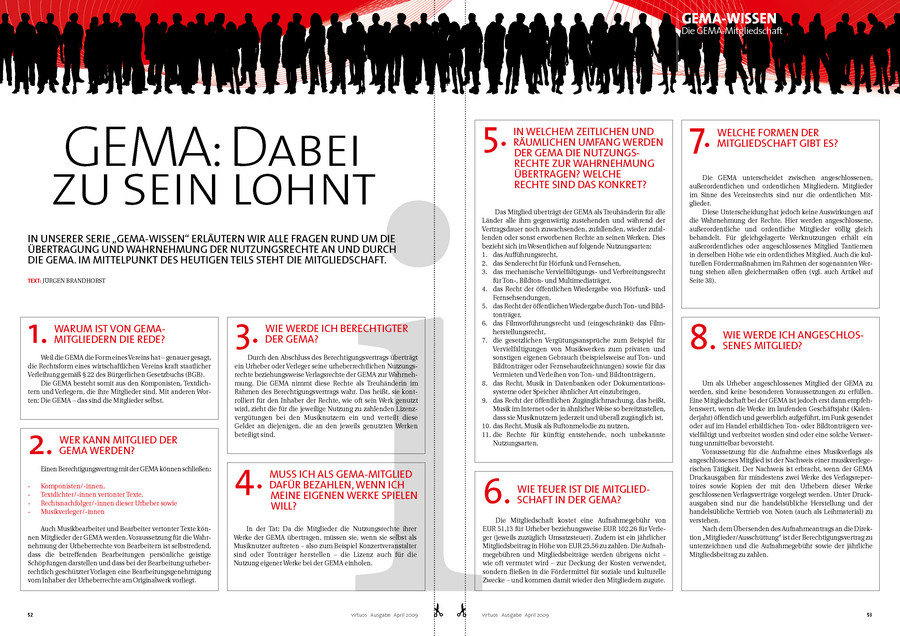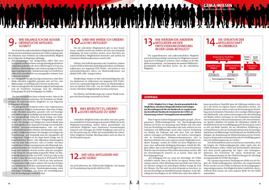 Themen mit aktuellem Bezug, meinungsbildende Artikel, Neuigkeiten rund um Rechte und Pflichten der Mitglieder, „Branchengeflüster“ – auch die aktuelle Ausgabe von virtuos bietet seinen Lesern jede Menge Lesestoff: