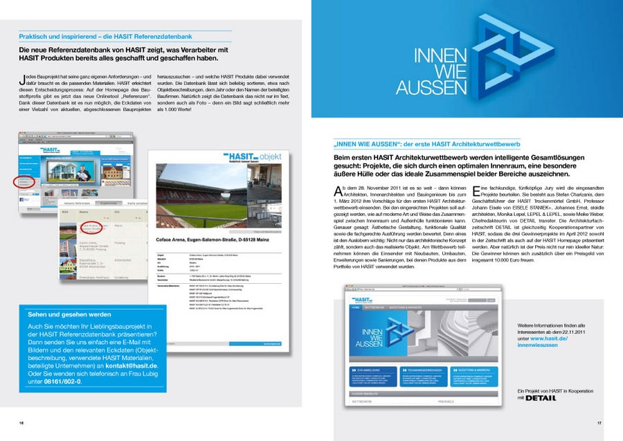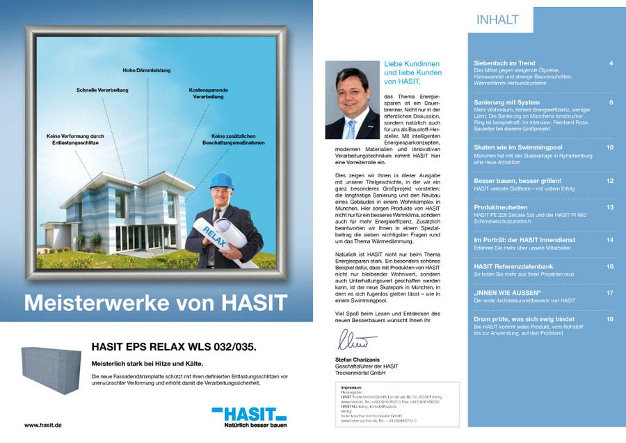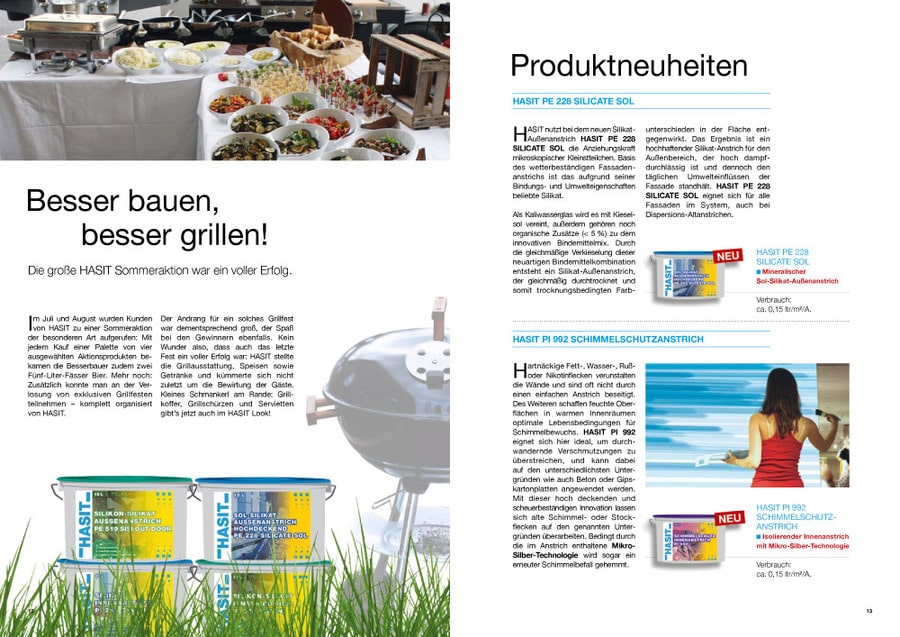 Daneben werden in der aktuellen Ausgabe wieder Produkt- und weitere Neuheiten vorgestellt, die besonders für Fachleute relevant sind – angefangen von HASIT PE 228 Silicate Sol, dem neuen mineralischen Außenanstrich, bis hin zur neuen Referenzdatenbank von HASIT, in der interessierte Bauherren einsehen können, welche Projekte mit welchen HASIT-Produkten umgesetzt wurden.