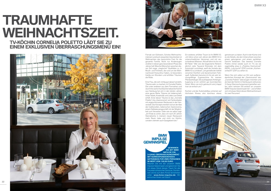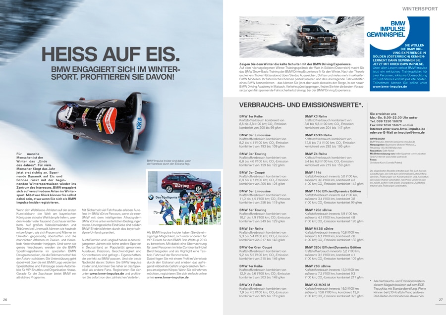 Für ein Verkaufsmagazin hat heller & partner eine Vielzahl von Dialogoptionen ins Magazin integriert. Neben der Printversion gibt es die BMW Impulse natürlich auch als E-Paper für verschiedene Anwendungsplattformen. Der Erfolg der BMW Impulse lässt sich durch die weit überdurchschnittliche Responsequote belegen.