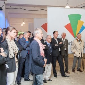 Als Vertreter des Gastgebers OTEC gab Eric Heppt einen ausführlichen Einblick in eines der spannendsten Immobilienprojekt Münchens: Dem Werksviertel. Dort wo früher Pfanni, Optimol und Zündapp ein Stück deutsche Wirtschaftsgeschichte geschrieben haben, entsteht ab 2015 eine harmonische Kombination aus Wohn- Kultur- und Gewerbeflächen. Insbesondere für Start-ups und Unternehmen aus den Kreativ-Branchen soll ein ansprechender Standort geschaffen werden. Bereits vor dem offiziellen Empfang fand eine Führung im angrenzenden Forum mit Johannes Ernst vom Architekturbüro Steidle statt.