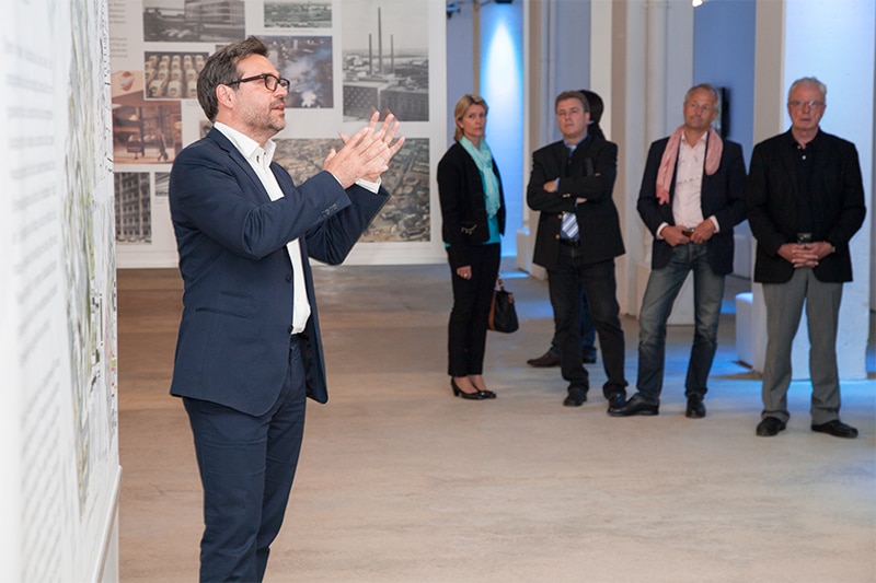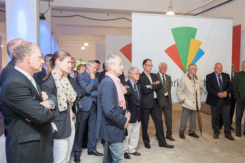 Als Vertreter des Gastgebers OTEC gab Eric Heppt einen ausführlichen Einblick in eines der spannendsten Immobilienprojekt Münchens: Dem Werksviertel. Dort wo früher Pfanni, Optimol und Zündapp ein Stück deutsche Wirtschaftsgeschichte geschrieben haben, entsteht ab 2015 eine harmonische Kombination aus Wohn- Kultur- und Gewerbeflächen. Insbesondere für Start-ups und Unternehmen aus den Kreativ-Branchen soll ein ansprechender Standort geschaffen werden. Bereits vor dem offiziellen Empfang fand eine Führung im angrenzenden Forum mit Johannes Ernst vom Architekturbüro Steidle statt.